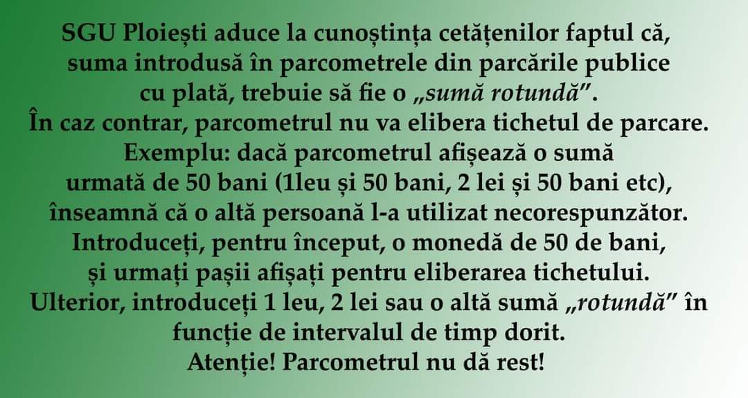 Front PloieștiIn parcometrele din parcarile publice cu plată din Ploiesti S.G.U. recomanda sa introduceti „sume rotunde” By RedactiePosted on 05/01/20210 second read0 0 604 Share on Facebook Share on Twitter Share on Google+ Share on Reddit Share on Pinterest Share on Linkedin Share on Tumblr