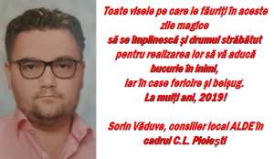 OpiniiSorin Văduva, consilier local Ploiești By RedactiaPosted on 27/12/201835 second read0 0 840 Share on Facebook Share on Twitter Share on Google+ Share on Reddit Share on Pinterest Share on Linkedin Share on Tumblr Toate visele pe care le făuriţi în aceste zile magice să se împlinescă şi drumul străbătut pentru realizarea lor să vă aducă bucurie în inimi, iar în case fericire şi belşug. La mulţi ani 2019!Sorin Văduva, consilier local ALDE în cadrul C.L. Ploiești