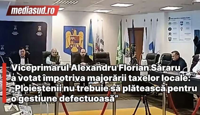 administratie FrontViceprimarul Alexandru Florian Săraru a votat împotriva majorării taxelor locale: „Ploieștenii nu trebuie să plătească pentru o gestiune defectuoasă”În cadrul ședinței extraordinare a Consiliului Local Ploiești, viceprimarul Alexandru Florian Săraru a votat împotriva proiectului de hotărâre care prevedea majorarea taxelor și impozitelor locale, unele dintre acestea urmând să crească cu până la 80%. Viceprimarul a motivat votul de respingere prin impactul social major pe care o astfel de decizie l-ar avea asupra ploieștenilor, în special asupra familiilor cu …Citeste mai mult