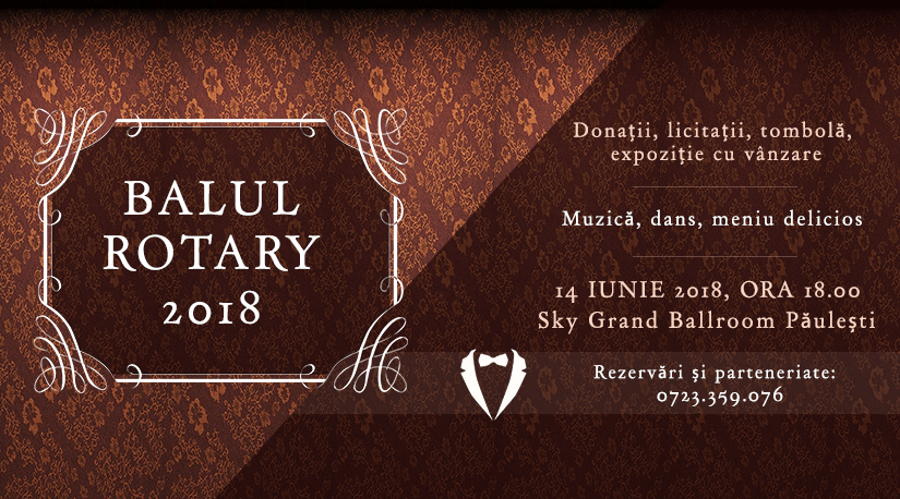 SocialBalul Rotary 2018, Ploiești – „SUSȚINEM EXCELENȚA”Clubul Rotary 2000 Ploiești organizează vineri, 14 iunie 2018, la Sky Grand Ballroom Păulești, Balul Rotary 2018 „Susținem excelența”. În cadrul acestui eveniment copiii și profesorii cu rezultate deosebite, din județul Prahova, vor primi premii de excelență. În cadrul Balului Rotary 2018, Irina Sârbu Band, Orchestra Filarmonicii „Paul Constantinescu” și Blue Noise – Acapella vor susține un recital extraordinar. Se vor organiza donații, licitații, tombolă, expoziție cu …Citeste mai mult