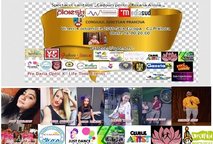 SocialSpectacol caritabil la Sala Europa a CJ Prahova: Cadouri pentru Roxana AlisiaVineri,www.infoploiesticity.ro,pregateste un nou spectacol caritabil, revedincandu-și de altfel poziția de lider la asemenea evenimente. De data aceasta este vorba de o fetiță cuminte și sociabilă, de 6 anișori, din comuna Boldești, sat Boldești Grădiștea, diagnosticată cu Sindrom plurimalformativ şi atrofie de esofag cu fistule. Ultima boală este un defect congenital al esofagului care presupune discontinuitatea acestuia şi limitarea pasajului bolului …Citeste mai mult