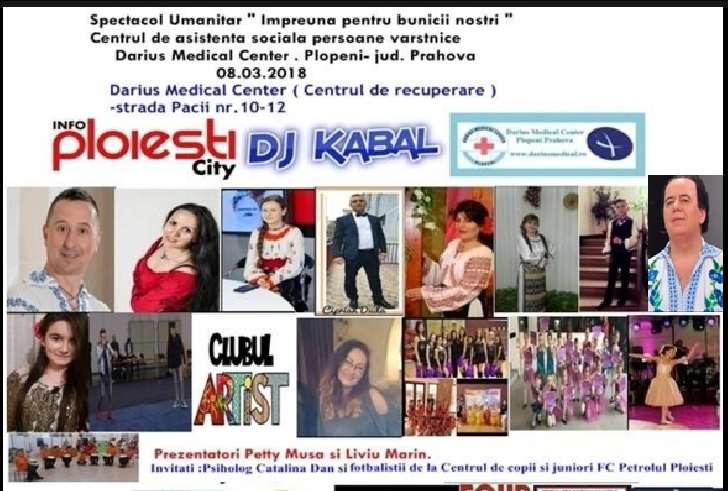 DiverseSpectacol caritabil la Plopeni: „Împreună pentru bunicii noștri”Joi, 8 martie 2018, începând cu ora 13.00, Info Ploiesti City și DJ Kabal în colaborare cu Darius Medical Center organizează, la Centrul de Asistență Socială pentru persoane vârstnice Plopeni, Strada Păcii, nr.11, un spectacol caritabil pentru persoanele în vârstă internate la acest centrul de recuperare. Timp de peste două ore, persoanele vârstnice vor avea parte de muzică, demonstrații de …Citeste mai mult