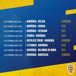 SportTimp de o săptămână, echipele naţionale ale României vor disputa 8 partide, toate oficiale By RedactiaPosted on 07/10/20193 min read0 0 747 Share on Facebook Share on Twitter Share on Google+ Share on Reddit Share on Pinterest Share on Linkedin Share on Tumblr Timp de o săptămână, între 8 şi 15 octombrie, echipele naţionale ale României vor disputa 8 partide importante, toate oficiale, informează frf.ro.Tricolorele antrenate de Mirel Albon debutează împotriva Belgiei, la Cluj, pe arena celor de la CFR. Meciul se dispută marţi, 8 octombrie, de la ora 18:30 şi va fi transmis în direct de PRO X.În aceeaşi zi, în Serbia, naţionala U19 antrenată de Laurenţiu Roşu joacă primul meci din cadrul turneului de calificare la Turul de Elită. Partida va începe la ora 19:00!Pe 10 octombrie, reprezentativa U21 evoluează la Ploieşti, pe stadionul “Ilie Oană” cu Ucraina, în al doilea joc din preliminariile EURO 2021. Meciul va începe la ora 20:30 şi va fi în transmisiune directă la PRO TV.Pe 11 octombrie, în Serbia, la turneul de califcare, România U19 va întâlni Spania.O zi mai târziu, pe 12 octombrie, la Torshavn, în Insulele Feroe, prima reprezentativă va disputa al şaptelea joc din preliminariile EURO 2020. Meciul va începe la ora 19:00 şi va fi în direct pe PRO TV şi Radio România Actualităţi.Jucătorii U19 încheie pe 14 octombrie, de la ora 15:00, turneul din Serbia cu un meci împotriva Lituaniei, în timp ce naţionala lui Mirel Rădoi se va duela cu Irlanda de Nord, la Voluntari, de la ora 20:30. Meciul tineretului va fi transmis în direct de PRO TV.Marţi, 15 octombrie, de la ora 21:45 se încheie săptămâna celor 8 jocuri, cu partida dintre România şi Norvegia, de pe Arena Naţională. Partida va fi în direct la PRO TV şi Radio România Actualităţi.