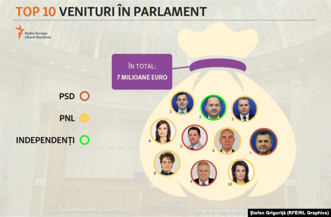 PoliticăTopul bogaților din Casa Poporului By RedactiaPosted on 20/04/201927 min read0 0 681 Share on Facebook Share on Twitter Share on Google+ Share on Reddit Share on Pinterest Share on Linkedin Share on Tumblr „Averea” cumulată a parlamentarilor, formată din venituri, bani puși deoparte, investiții și acțiuni la diverse firme, dar și din bijuterii și artă, se ridică la aproximativ 87 de milioane de euro, arată o analiză Europa Liberă bazată pe cele mai recente declarații de avere.Ana Birchall, vicepremier în Guvernul PSD, este de departe cel mai bogat parlamentar din România – 23 de milioane de euro, pe care îi are în investiții nepublice în străinătate.După vicepremierul Birchall, la mare distanță se află Remus Borza, acum independent, cu doar puțin peste 3 milioane de euro. Printre cei mai bogați parlamentari se numără și social-democrații Tit Liviu Brăiloiu sau Eugen Bejinariu, liderul ALDE, Călin Popescu Tăriceanu, liberalii Ion Ștefan, Valeria Schelean sau Iancu Caracotă, dar și Robert Turcescu, de la PMP.Europa Liberă a realizat trei clasamente: în funcție de economii și investiții, de venituri și de bunuri de valoare, după cum reiese din cele mai recente declarații de avere.Top 10 parlamentari cu economii și investiții de peste jumătate de milion de euroCei zece parlamentari care dețin cei mai mulți bani în conturi bancare și în investiții, fie ele acțiuni la companii sau fonduri de investiții și de pensii, cumulează nu mai puțin de 35 de milioane de euro. Adică peste 60% din totalul deținut la acest capitol de toți cei 465 de parlamentari la un loc – aproape 56 de milioane de euro.1. Ana Birchall – PSD: 23,4 milioane euro. Social-democrații conducVicepremier pe probleme de parteneriate strategice și vicepreședinte al PSD, deputata deține investiții de tip „securities”, în companii din străinătate, estimate la 23 de milioane de euro. În plus, Birchall mai deține în conturi, în fonduri de investiții sau alte produse financiare, peste 400.000 de euro. Birchall a profesat ca avocat în SUA, la începutul anilor 2000, apoi a devenit consiliera ministrului de Externe Mircea Geoană. Este măritată cu britanicul Martyn Birchall, om de afaceri și fost specialist în piețe financiare.2. Remus Borza – Independent: 3,32 milioane euroDeputatul plecat din ALDE are acțiuni în valoare de aproximativ 3,3 milioane de euro la Polisano Pharmaceuticals, firmă unde deține 11,4% din acțiuni, precum și la Poiana Ciucaș S.A., unde este asociat cu 20%, alături de compania omului de afaceri Gruia Stoica, Grampet, condamnat cu suspendare pentru corupție. Restul sumelor deținute în conturi sunt în jur de 12.000 de euro. Avocat și specialist în insolvențe, Borza deține casa de insolvență Euroinsol, care a avut contracte cu mari companii de stat, aflate în pragul falimentului – cele mai notorii fiind Hidroelectrica, Uzinele Reșița sau Plafar. Borza a fost condamnat la un an de închisoare cu suspendare, pentru conflict de interese, după ce din postura de administrator judiciar la Hidroelectrica a angajat propria casă de avocatură, Borza și Asociații, să reprezinte compania.3. Călin Popescu Tăriceanu – ALDE: 3,13 milioane euroPreședintele Senatului și liderul ALDE este unul dintre cei mai bogați parlamentari. Tăriceanu deține peste 2,29 milioane de euro ca profit nerepartizat de la firma sa, Automotive Trading Services, pe care o controlează cu 85%. Tăriceanu mai deține acțiuni în valoare de aproximativ 98.000 de euro la firmele Automotive Trading Services, Intervam, Sopas (Servicii financiare și leasing), BRD, Transgaz și Banca Transilvania. De asemenea, șeful Senatului și-a cesionat drepturile asupra pădurii Valea Lungă, din județul Dâmbovița, în schimbul sumei de 250.000 de euro. Tăriceanu este judecat pentru mărturie mincinoasă, în dosarul „Ferma Băneasa”, în care a primit deja o achitare în primă instanță, iar procurorii DNA au cerut în 2018 avizul Senatului pentru a-l urmări penal pe Tăriceanu într-un nou dosar penal, legat de o presupusă mită de 10% dintr-un contract cu licențele Microsoft.4. Tit Liviu Brăiloiu – PSD: 1,23 milioane euroSenatorul PSD este și el unul dintre cei mai bogați parlamentari. El deținea cash, în conturi, 1,18 milioane euro, la data completării celei mai recente declarații de avere. Brăiloiu mai deține acțiuni la firmele Complex Palas Pelican, din stațiunea Mamaia, la Ospitalitatea Romtour, Montimpex și National Service Group. Brăiloiu, fost prefect de Constanța, numit în 2009 în guvernarea PDL-PSD, are afaceri în Spania și este milionar în euro, conform revistei Capital. În actuala legislatură s-a făcut remarcat în Parlament prin gesturi obscene și injurii adresate deputatei USR Florina Presadă, dar și prin ideea de a introduce o lege de „controlare” a postărilor pe Facebook. El este și parlamentarul care a dat cei mai mulți bani cu împrumut, peste un milion de euro.5. Eugen Bejinariu – PSD: 1,05 milioane euroDeputatul PSD, aflat la al patrulea mandat de parlamentar, deține acești bani cash, în conturi. Bejinariu a fost secretar general al Guvernului, pe vremea lui Adrian Năstase, iar anterior a condus RA-APPS. Bejinariu a scăpat de urmărirea penală, fiind protejat de colegii săi parlamentari, care nu i-au ridicat imunitatea. Procurorii DNA suspectau că Bejinariu ar fi comis abuz în serviciu, semnând din partea Guvernului Năstase contracte pentru licențe Microsoft în favoarea firmei Fujitsu Siemens și provocând un prejudiciu estimat la 67 milioane de dolari.6. Damian Florea – PSD: 843.000 euroDeputatul PSD deține grosul acestei sume în acțiuni la Fondul Proprietatea (aproximativ 719.000 euro), dar și din cumpărarea unei creanțe de la altcineva, de pe urma căreia are de recuperat peste 75.000 de euro de la Comisia Națională pentru Compensarea 
